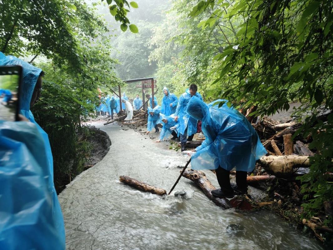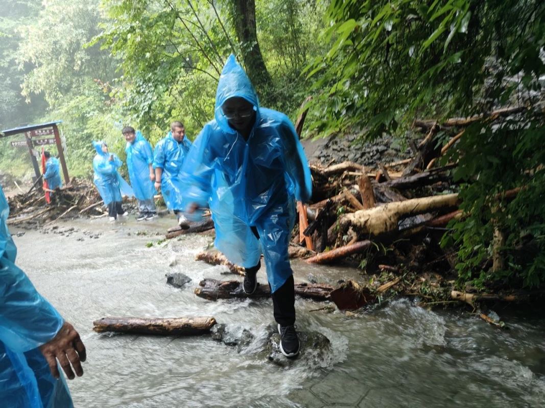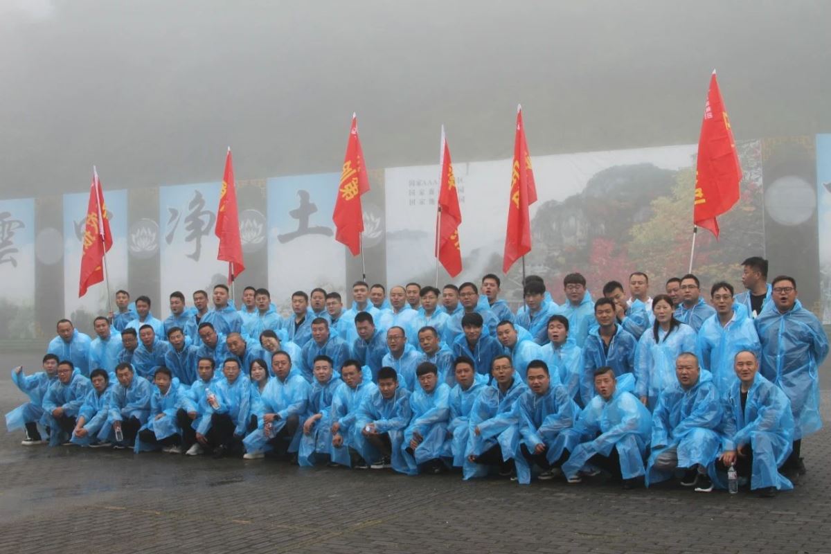 早餐后,開啟一天的團(tuán)隊(duì)建設(shè)活動(dòng),活動(dòng)主題:“雨中爬山”,活動(dòng)地點(diǎn):嵐皋縣南宮山國家森林公園,活動(dòng)目標(biāo):沖頂南宮山金頂。上午9點(diǎn),風(fēng)雨無阻,所有參會(huì)老師整齊列隊(duì),在6位旗手的帶領(lǐng)下,身穿藍(lán)色雨衣,統(tǒng)一來到山門口,隨著一聲令下,大家冒雨向最高點(diǎn)金頂進(jìn)軍,大雨滂沱,也擋不住正能人前進(jìn)的腳步,山洪頻發(fā),也澆不滅正能人登頂?shù)募で椋陂g,大家團(tuán)結(jié)一致、齊心協(xié)力,手挽手,相互攙扶、互相照顧、不畏艱險(xiǎn),心理卯足一股勁,不到山頂誓不罷休,從始至終體現(xiàn)出正能人不懼艱險(xiǎn)、奮勇向前、英勇無畏不服輸?shù)膫ゴ髣?chuàng)業(yè)精神和非凡創(chuàng)業(yè)干勁。經(jīng)過近四個(gè)小時(shí)的持續(xù)攀登,大家渾身濕透,分不清汗水、淚水和雨水……,所有老師全部成功登頂,又一次為團(tuán)建交上了滿意的答卷。