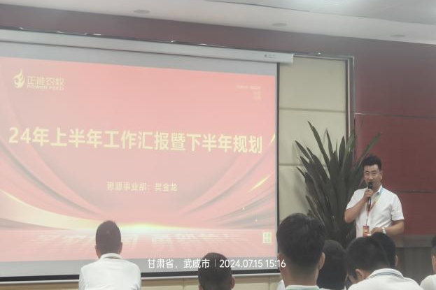 七月的夏天,熱情如火燃燒;盛夏的時刻,希望與夢想綻放,甘肅正能科技園2024年半年度工作會議7月15日在武威黃羊基地順利召開,本次會議特邀總部高級副總裁連星、反芻專家杜紅芳以及技術研發部趙詩瑜老師,以及全體戰將55人參加了此次會議。 本次會議以“聚焦重點、精準發力、迎接挑戰、再創佳績!”為主題,旨在全面回顧上半年度的工作成效與挑戰,明確下半年度的工作重點與方向,并提出了一系列具體的工作措施及建議,以進一步激發團隊潛能,凝聚團隊力量,確保飼料產業甘肅正能科技園全年目標任務的圓滿完成。